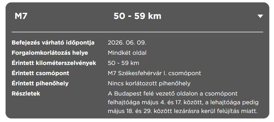 MKIF Zrt. tájékoztatása Székesfehérvár-kelet Agárd csomópont részleges zárása